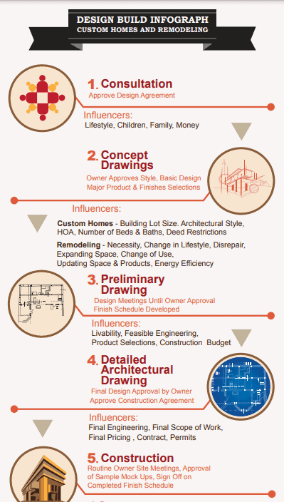 The design build construction process is an important and efficient delivery method for the design and construction of a variety of building projects for both remodeling and new ground up construction.