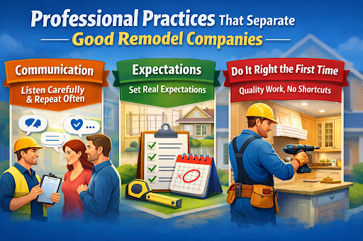 Beyond credentials, the day-to-day practices of a remodel company determine whether your renovation experience is rewarding or painful. There are three non-negotiables.