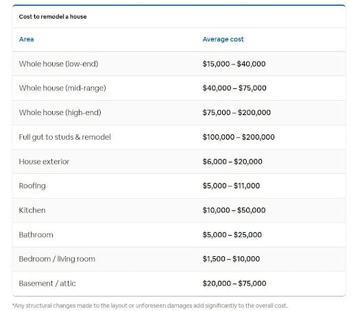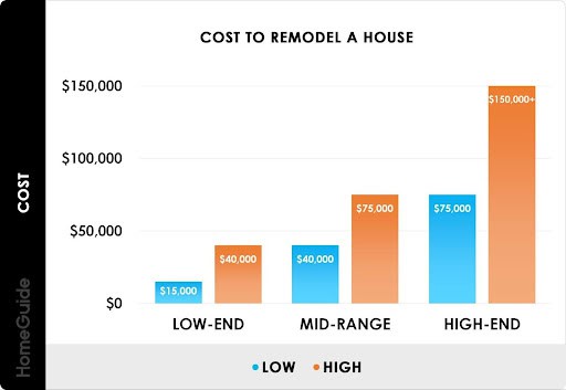 - Whole house (high-end): $75,000 – $200,000: Knock down walls. Bring in higher-quality finishes. A real design upgrade.
